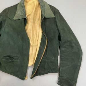 *AS-IS* 1930S-40S FOREST GREEN SUEDE LEATHER COLLAR TALON ZIP JACKET