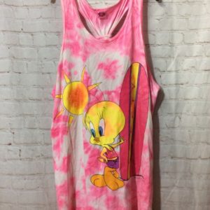 1980S TIE DYE TANK TOP DRESS TUNIC TWEETY BIRD SURF GRAPHIC