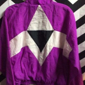 1990’S WINDBREAKER JACKET – ZIP-UP – GEOMETRIC PRINT – COLOR BLOCK DESIGN – EMBROIDERED DESIGN