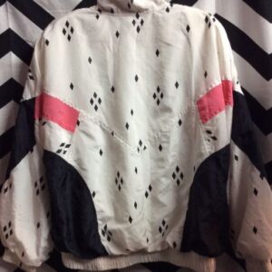 WINDBREAKER JACKET – COLOR BLOCK PANELS ON ARMS & POCKETS – DIAMOND PATTERN DESIGN – SHOULDER PADS