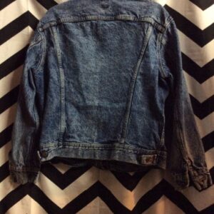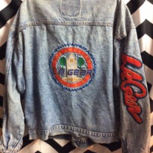 JORDACHE DENIM JACKET – CROPPED – SEQUIN APPLIQUE PATCHES – ACID WASHED