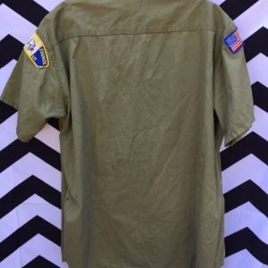 VINTAGE BOY SCOUTS SHIRT, SHORT SLEEVES, BUTTON-UP, WITH PATCHES