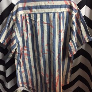 SHORT SLEEVE BUTTON-UP SHIRT W/1 FRONT POCKET & PAINTED LEAF PRINT ON FAKE DENIM VERTICAL STRIPED FABRIC