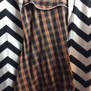 PLAID DESIGN W/TRIM & OVER SIZE BUTTON DRESS
