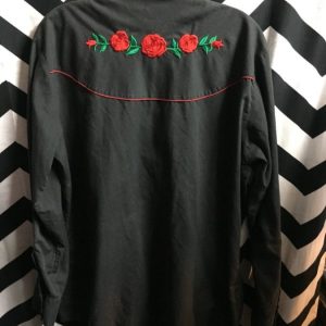 SHIRT – LONG SLEEVES – BUTTON-UP – FLORAL ROSE PRINT ON METALLIC BACKGROUND