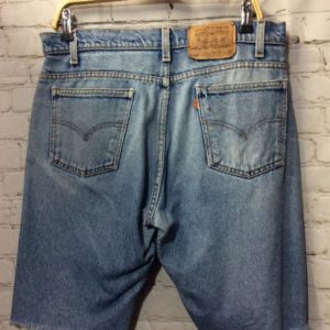 LEVIS DENIM SHORTS – CUTOFF – LONG CUT – 505 – ORANGE TAB – ACID WASH