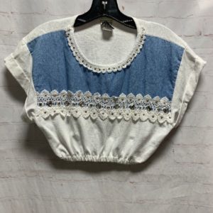 1980’S VINTAGE RE-CONSTRUCTED DENIM & LACE CROPPED TOP W/ RHINESTONES