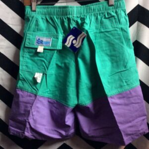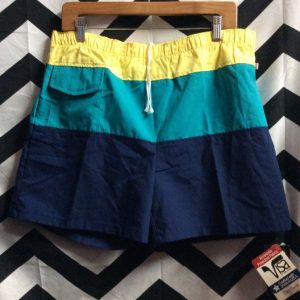 RETRO JANTZEN SWIM SHORTS – ELASTIC WAIST – HORIZONTAL COLOR BLOCK DESIGN