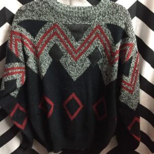 KNIT PULLOVER SWEATER W/ LEATHER TRIANGLE PATCHES