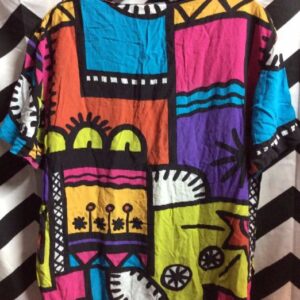 RETRO 1990’S SHIRT – RAYON – POCKET – BRIGHT COLOR GRAPHIC PRINT
