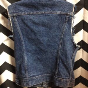 CLASSIC LEE DENIM VEST – CUTOUT SLEEVES – DARK WASH FRAYED SMALL FIT