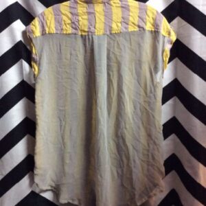 BLOUSE – SHORT CUFFED SLEEVE – VERTICAL STRIPED DESIGN – FRONT POCKETS – SHEER BACK