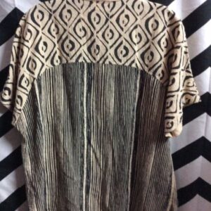 1990’S SHIRT – COCONUT BUTTONS – ETHNIC PRINT – MIXED PATTERN – COLOR BLOCK DESIGN