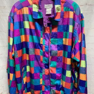 PASTEL COLORED GEOMETRIC SQUARES IN COLOR-BLOCK DESIGN WINDBREAKER JACKET