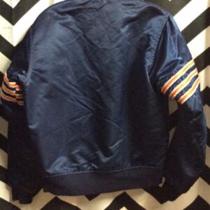 BASEBALL STYLE JACKET – SATIN – CHICAGO BEARS – NFL PATCH – STRIPED SLEEVES