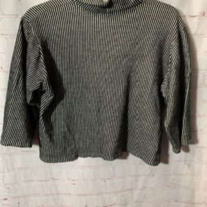 RETRO LS MOCK TURTLE NECK STRIPED THERMAL KNIT TOP SMALL FIT