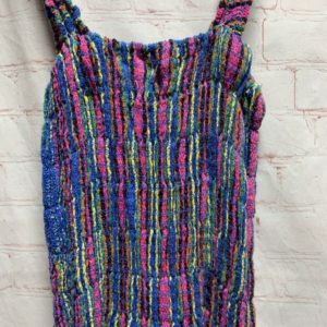 WOVEN KNIT SUN DRESS W/ SHIRRED TOP & COLORFUL VERTICAL STRIPES