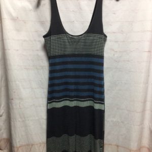 BODY CON STRETCH MESH DRESS W/ MULTIPLE HORIZONTAL STRIPES