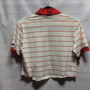 HORIZONTAL PINSTRIPED CROPPED POLO STYLE TOP W/ COLLAR