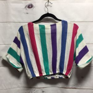 MULTI-COLORED STRIPED OPEN WEAVE KNIT CROPPED TOP W/ DOLMAN STYLE SLEEVES