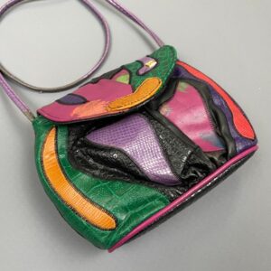 1980S SMALL COLORFUL PATCHWORK LEATHER PURSE MAGNETIC CLOSURE