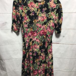 1980S-90S SS BD MINI DRESS RAYON FLORAL PRINT PADDED SHOULDERS 7-75