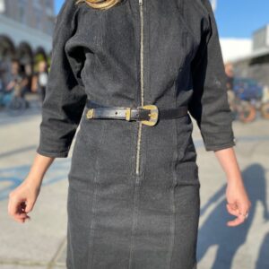 LATE 80S EARLY 90S LS DENIM MINI DRESS HALF-ZIP FRONT AND CUFF ZIP DETAIL