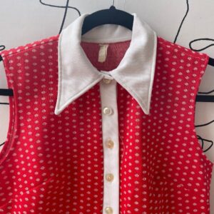1960S SLEEVELESS POLKA DOT MINI DRESS WITH DRAMATIC POINTED COLLAR AND MATCHING WAIST TIE