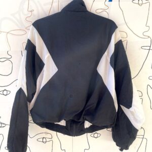 AMAZING & RARE 1990S ACID DENIM PRINT WINDBREAKER JACKET USA SLEEVES & BACK LETTERING