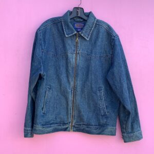 LATE 1990S PENDLETON ZIP UP DENIM JACKET WITH COLOURFUL BLANKET BACK PANEL