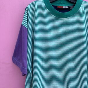 90S COLORBLOCK T-SHIRT W/ PINSTRIPES ON CHEST AS-IS