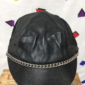 LEATHER BIKER CAP WITH CHAIN LINK