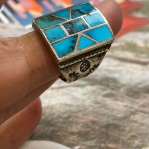 GEOMETRIC TURQUOISE INLAY SQUARE SETTING STERLING SILVER RING DECORATIVE SIDES