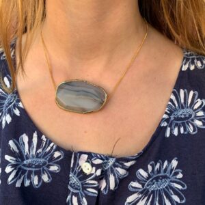 GIANT GOLD DIPPED FACETED AGATE STONE ON DAINTY GOLD CHAIN