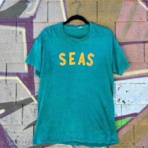 1970S SEAS #3 GRAPHIC PRINT SINGLE STITCH T-SHIRT FUN REPAIRS THROUGHOUT AS-IS