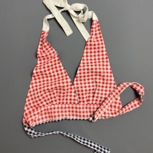1970S AMERICANA GINGHAM PRINT REVERSIBLE SELF TIE HALTER CROP TOP