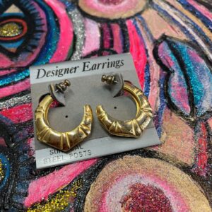 1980S HEAVY GOLD ANGULAR CHISELED MINI HOOP EARRINGS