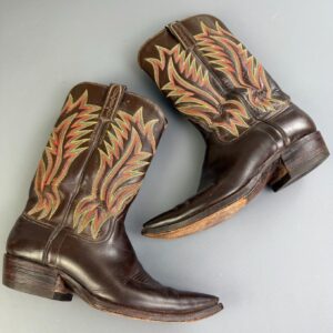 KILLER! PRIMARY COLOR STITCHING SHINY BLACK LEATHER ALMOND TOE COWBOY BOOTS