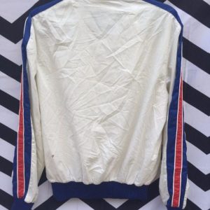 RETRO BASIC BASEBALL STYLE JACKET, ZIP-UP, RACING STRIPES DOWN SHOULDERS & SLEEVE