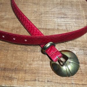 1980’S NARROW GENUINE SNAKESKIN BELT W/ ROUND SOLID BRASS BUCKLE & LOOP