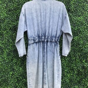 AWESOME 1980S SOFT ACID-WASH DENIM 3/4 LENGTH SLEEVE BUTTON-UP DRESS