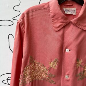 AS-IS AMAZING 1950S-60S BEADED & EMBROIDERED LOTUS FLORAL DESIGN LONG SLEEVE BUTTON UP SHIRT