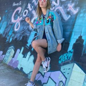 LA GEAR ACID WASHED CROPPED DENIM JACKET W/ EMBROIDERED BACK LOGO