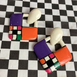 RETRO COLOR-BLOCK CHECKER PATTERN EARRINGS *1980S DEADSTOCK