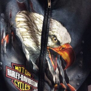 HARLEY DAVIDSON SWEATSHIRT – ZIP-UP FRONT – LEATHER TRIM – EAGLE DESIGN FULL FRONT – STURGIS ’95 BLACK HILLS RALLY