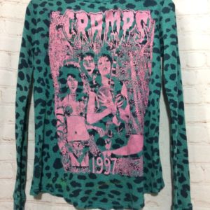 CUSTOM MADE LEOPARD PRINT W/ THE CRAMPS GRAPHIC PRINT THERMAL T-SHIRT