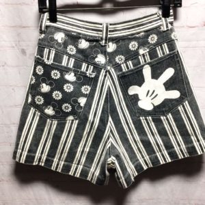 VERTICAL STRIPED PRINT W/ MICKEY MOUSE GRAPHIC & HIGH WAIST DENIM SHORTS