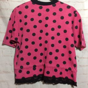 1980 POLKA DOT DRAWSTRING CROP TOP W/ LACE TRIM