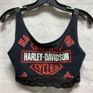 RE-PURPOSED HARLEY DAVIDSON CROPPED TANK TOP W/ LACE TRIM