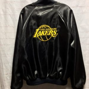 LOS ANGELES LAKERS SATIN ACETATE ZIP UP BOMBER JACKET EMBROIDERED FRONT AND BACK LOGOS